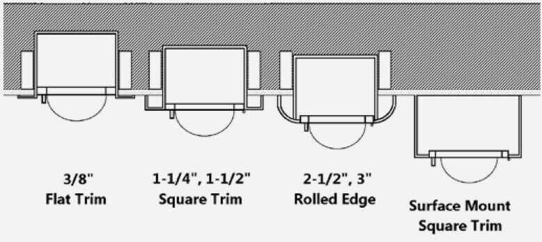 1650 - Recessed 3/8" flat trim, Inside Box: 10-1/2" x 24" x 4" 1651 - Semi-recessed 1-1/2" square edge trim, Inside Box: 10-1/2" x 24" x 4" 1652 - Semi-recessed 3" rolled edge trim, Inside Box: 10-1/2" x 24" x 4" 1658 - Surface mount, Inside Box: 13-11/16" x 27-3/16" x 4-5/8" 1660 - Recessed 3/8" flat trim, Inside Box: 14" x 30" x 4" 1661 - Semi-recessed 1-1/4" square edge trim, Inside Box: 14" x 30" x 4" 1662 - Semi-recessed 2-1/2" rolled edge trim, Inside Box: 14" x 30" x 4"" 1668 - Surface mount, Inside Box: 17-3/16" x 33-3/16" x 4-5/8" 1670 - Recessed 3/8" flat trim, Inside Box: 28" x 30" x 4" 1678 - Surface mount, Inside Box: 31-3/16" x 33-3/16" x 4-5/8"