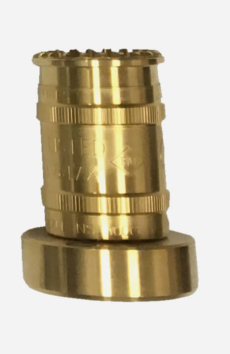 Cast brass satin-finished nozzle with adjustable fog, straight stream and shut-off features.