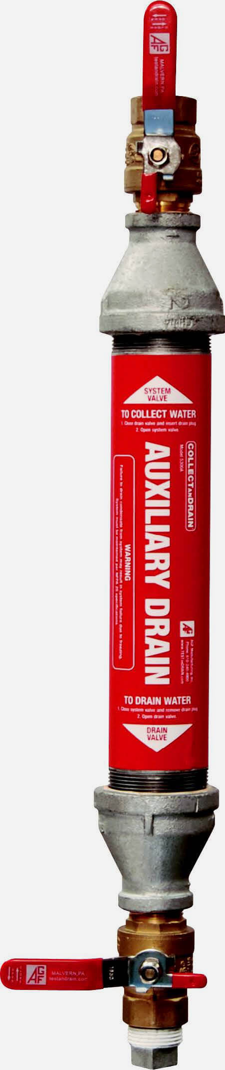 Application: Designed to collect moisture from the dry sprinkler system. The COLLECTanDRAIN® Family of products are auxiliary drains (low-point drains, drum drips, condensation collection assemblies) available in several configurations to meet and exceed NFPA 13 and NFPA 25 requirements addressing drainage in dry and pre-action sprinkler systems.