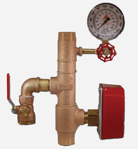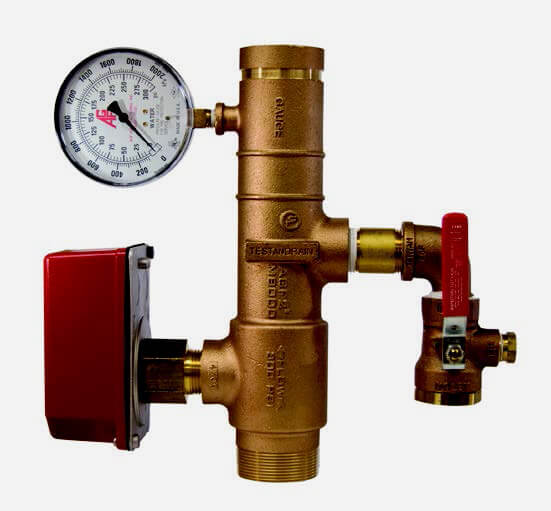 - Bronze Riser lettered on both sides allowing right or left installation and providing required signage for flow direction, test and drain outlet, and gauge location